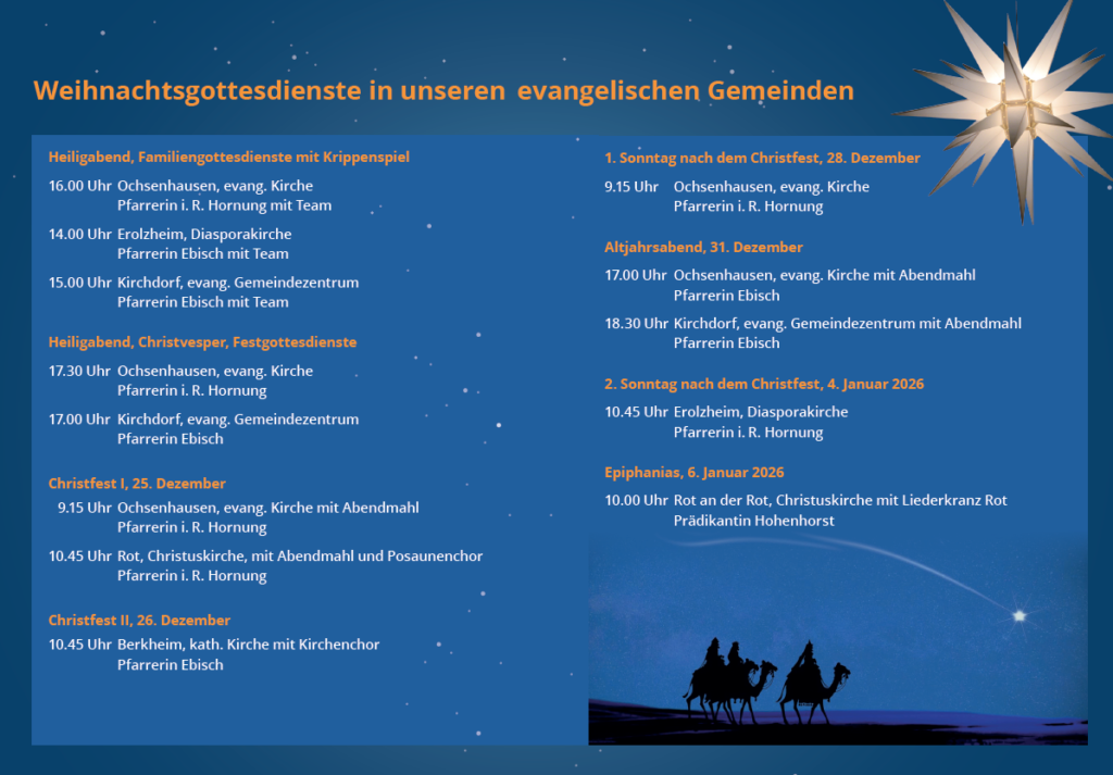 Dienstag, 23. Dezember 2025, Uhrzeit lag bei Redaktionsschluss noch nicht fest, Diasporakirche Erolzheim